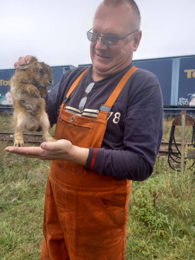 Aber der Reihe nach: Am Freitag vor der Veranstaltung bemerkten wir, dass ein kleiner Hase in die Drehscheibengrube gestürzt war und aus eigener Kraft nicht mehr herauskam. Also haben wir einen Hasenjagd veranstaltet, den kleinen Kerl gefangen und wieder ausgesetzt. Es geht ihm wieder gut.