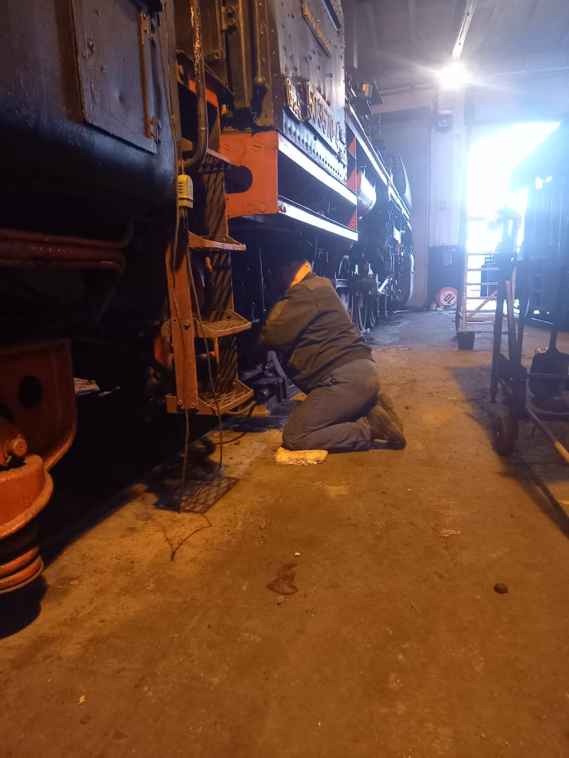 Die Lokomotive erhält auch eine Bremsrevision. Dazu wurden die Bremszylinder demontiert und die Bremskolben untersucht.