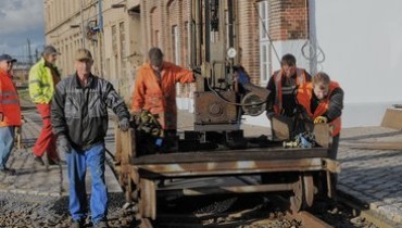 Es ist Sonnabend. Die Regenwolken sind abgezogen. Doch die Hosen und Schulterpartien der Männer vom Verein Dampflokfreunde Salzwedel und ihre Partner vom hiesigen Historischen Lokschuppen e. V. sind noch immer feucht. Seit Stunden entladen sie die Tieflader, die die Maschinen aus Salzwedel hergebracht haben. Der Umzug in das sanierte Schaudepot nach Wittenberge ist in vollem Gange. Die künftige Werkstatt füllt sich.