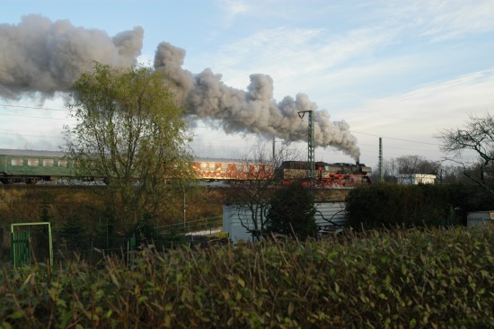 Mit sattem Schnaufen und prächtiger Rauchfahne zog am Freitagvormittag ein malerisches Gespann aus Salzwedel kommend an Wahrburg vorbei, durch den Stendaler Hauptbahnhof in Richtung Magdeburg: eine Dampflok, die einen roten Speisewagen, einen grünen Personenwagen und einen Packwagen der Deutschen Reichsbahn zog. Die Bahn ist nicht etwa in alte Zeiten zurückgefallen.