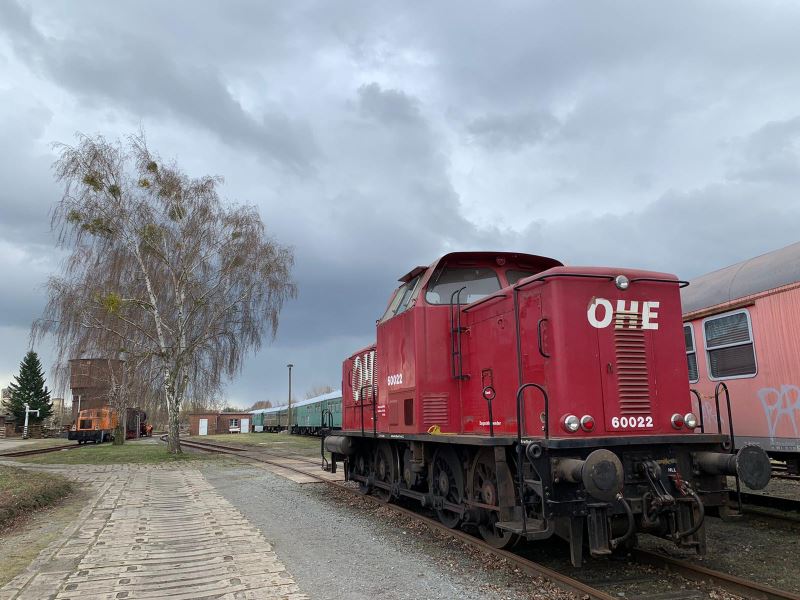 Die folgenden Bilder zeigen unsere Diesellok 60022 auf der Fahrt zu den draußen stehenden Exponate und die Bereitstellung der Lokomotiven auf unserem Wartungskanal im Außengelände des Museums