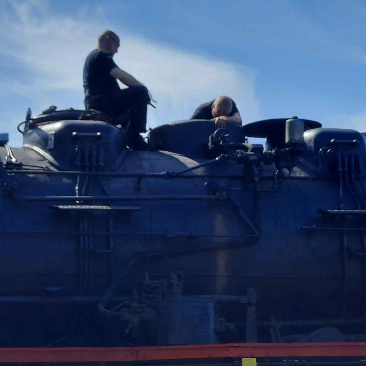 Nebenbei wurde noch die Dampflok Emma komplettiert, nachdem sie vom Transport zu ihrem Einsatz in Luckau (siehe letzter Newsletter) zurückkehrte.