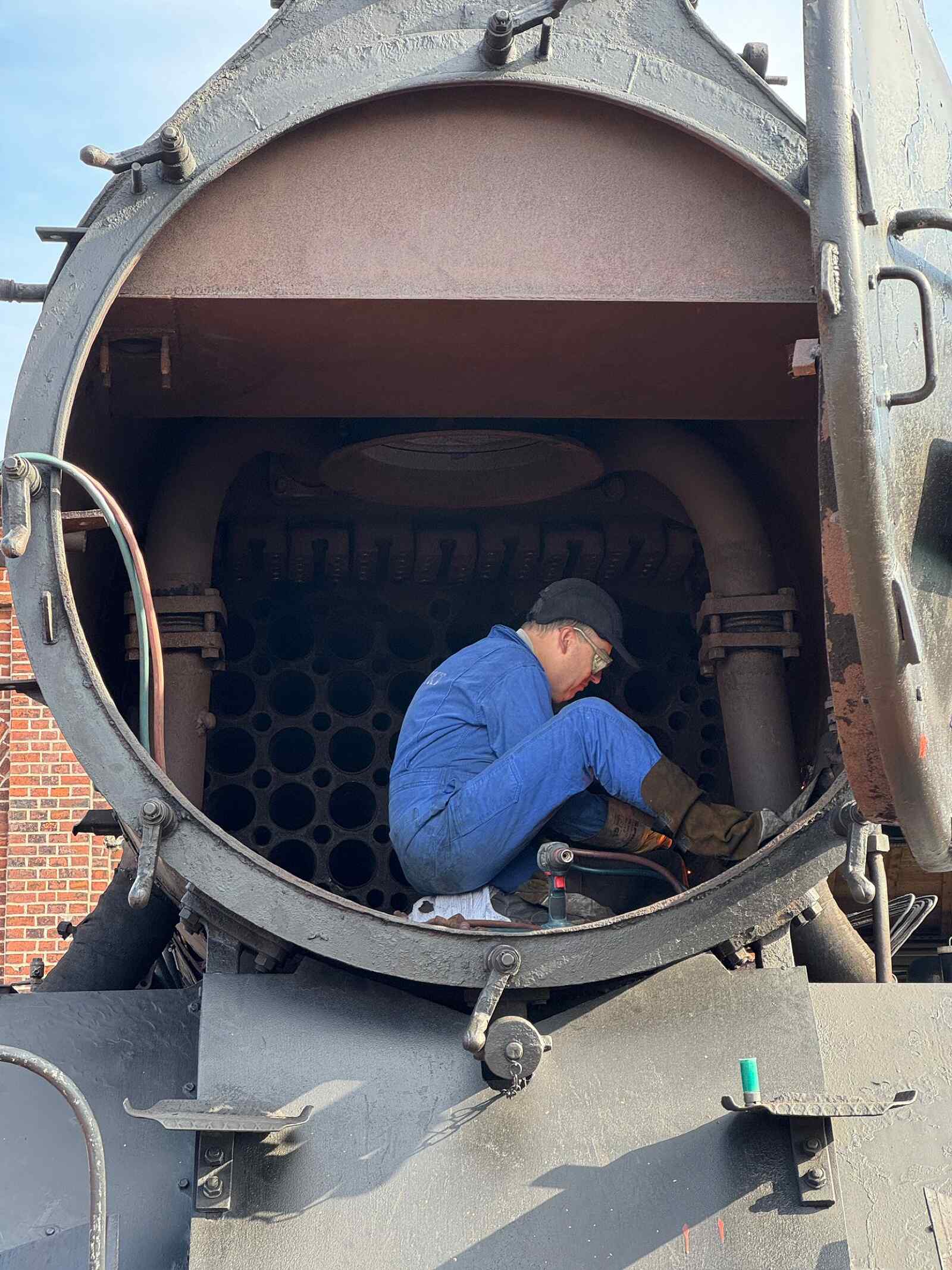 Bevor die Saison losgeht, haben wir ordentliche Fortschritte bei unserer Dampflok 50 3682 erzielt, die sich gerade in der Demontage befindet, damit sie einen neuen Kessel erhalten kann. Vorher muss allerdings noch das Führerhaus abgenommen werden, was gerade die Hauptaufgabe ist. Man glaubt gar nicht, wie viele Schrauben und Verbindungen zu lösen sind, damit das Führerhaus vom Rahmen und vom bisherigen Kessel getrennt werden kann. Etliche Schrauben waren dabei nicht mehr zu lösen. Also war der Schweißbrenner im Dauereinsatz, um sie durchzutrennen. Die angefügten Bilder zeigen den Einsatz der Kollegen.